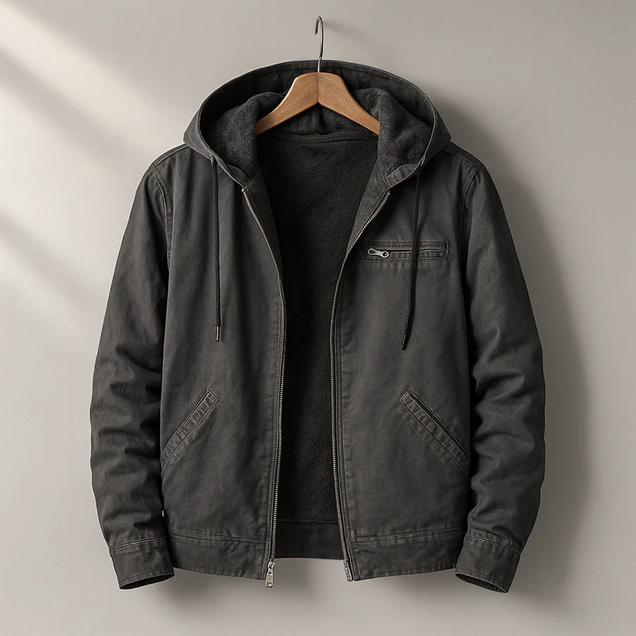 A rugged piece with a surprisingly soft core, this Roveri jacket balances workwear heritage with modern comfort. The distressed cotton canvas shell lends a durable, lived-in appeal, while the soft sherpa lining and hood wrap you in a warm embrace. Designed for city strolls, weekend plans, and everything in between, it pairs easily with t-shirts, flannels, and knits.